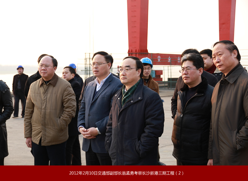 2012年2月10日,交通運(yùn)輸部黨組副書記、副部長(zhǎng)翁孟勇來長(zhǎng)沙新港考察時(shí)強(qiáng)調(diào):長(zhǎng)沙新港變化一次比一次大,當(dāng)前要借助湖南加大水運(yùn)發(fā)展力度的有利契機(jī),加快樞紐、港口和湘江2000噸級(jí)航道提升建設(shè),更好地服務(wù)經(jīng)濟(jì)社會(huì)和航運(yùn)的持續(xù)發(fā)展。
